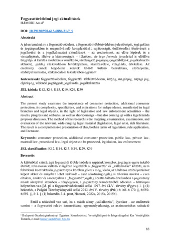 Hámori Antal (2025) Fogyasztóvédelmi jogi aktualitások. In: Szemelvények a BGE kutatásaiból 2024. Budapesti Gazdaságtudományi Egyetem, Budapest, pp. 83-99. ISBN 978-615-6886-21-7