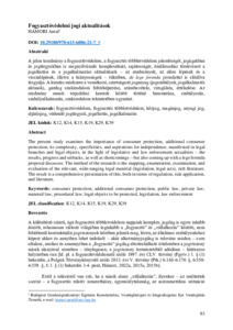 | Kulcsszavak: | fogyasztóvédelem, fogyasztói többletvédelem, közjog, magánjog, anyagi jog, eljárásjog, védendő jogtárgyak, jogalkotás, jogalkalmazás, consumer protection, additional consumer protection, public law, private law, materail law, procedural law, legal objects to be protected, legislation, law enforcement | ||||||