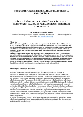 Bán Erika (2025) Kockázati fókuszkeresés a belső ellenőrzés új korszakában. In: II. Dr. Sztanó Imre Emlékkonferencia. Budapesti Gazdaságtudományi Egyetem, Budapest, pp. 1-12. ISBN 978-615-6886-22-4