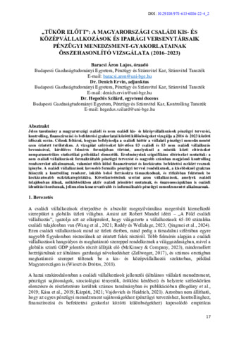 Baracsi Áron Lajos és Denich Ervin és Hegedűs Szilárd (2025) „Tükör előtt”: a magyarországi családi kis- és középvállalkozások és iparági versenytársaik pénzügyi menedzsment-gyakorlatainak összehasonlító vizsgálata (2016–2023). In: II. Dr. Sztanó Imre Emlékkonferencia. Budapesti Gazdaságtudományi Egyetem, Budapest, pp. 1-18. ISBN 978-615-6886-22-4