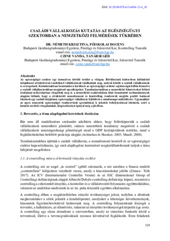 Az egészségügyi szektor egy intenzíven bővülő terület a világon. Bővülésének hátterében különböző tulajdonosi struktúrával rendelkező vállalkozások találhatóak meg, melyek között a családi vállalkozások is szerepelnek. Kutatásunkban bemutatásra kerülnek az egészségügyi szektor sajátosságai külön kiemelve a családi vállalkozásokban megjelenő egyediségeket. Tanulmányunkban a nemzetközi felméréseket feltáró irodalmat mélyrehatóan vizsgáltuk meg és a nemzetközi szakirodalom által bemutatott esettanulmányok alapján látható, hogy a strukturált menedzsment és kontrolling rendszerek megléte pozitív hatással lehetnek egy családi tulajdonú, egészségügyi vállalkozás fejlődésére, mindennapi működésére. Ugyanakkor az egyes nemzetek egészségügyi rendszerének specialitásai is jelentős befolyásolással lehetnek, ezért a kutatás további vizsgálatokat, kiegészítéseket igényel még a jövőben.
