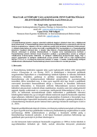 Tangl Anita és Vajna István (2025) Magyar autóipari vállalkozások fenntarthatósági jelentéskészítésének sajátosságai. In: II. Dr. Sztanó Imre Emlékkonferencia. Budapesti Gazdaságtudományi Egyetem, Budapest, pp. 1-17. ISBN 978-615-6886-22-4